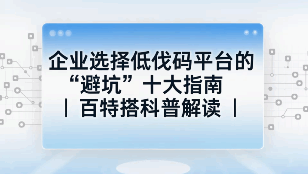 本文从低代码平台选型角度出发,深度剖析企业常见误区,提供十大实用避坑指南,涵盖业务匹配、可扩展性、安全性等关键维度,助力企业做出明智决策。百特搭低代码平台专家分享干货,避免浅层信息,提升选型效率。